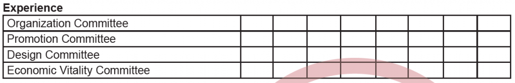 The next section we look at is experience. While experience isn’t required to be on the board, it is helpful to have some board members that do have some experience with the committees of the organization. This lends knowledge and cuts down on the amount of time your boards spends doing the work of the committees. Rather, they know the work is being done so they can update the board and move onto the next report.